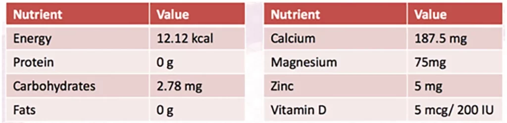 Each serving of Nutriplus Bonehealth provides the following nutrients: