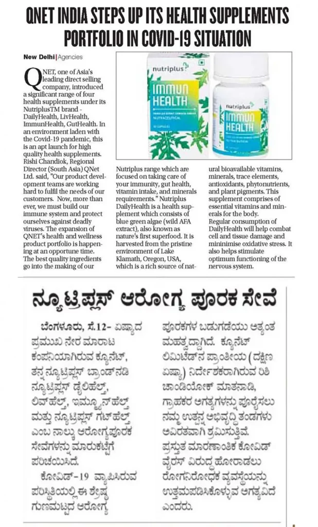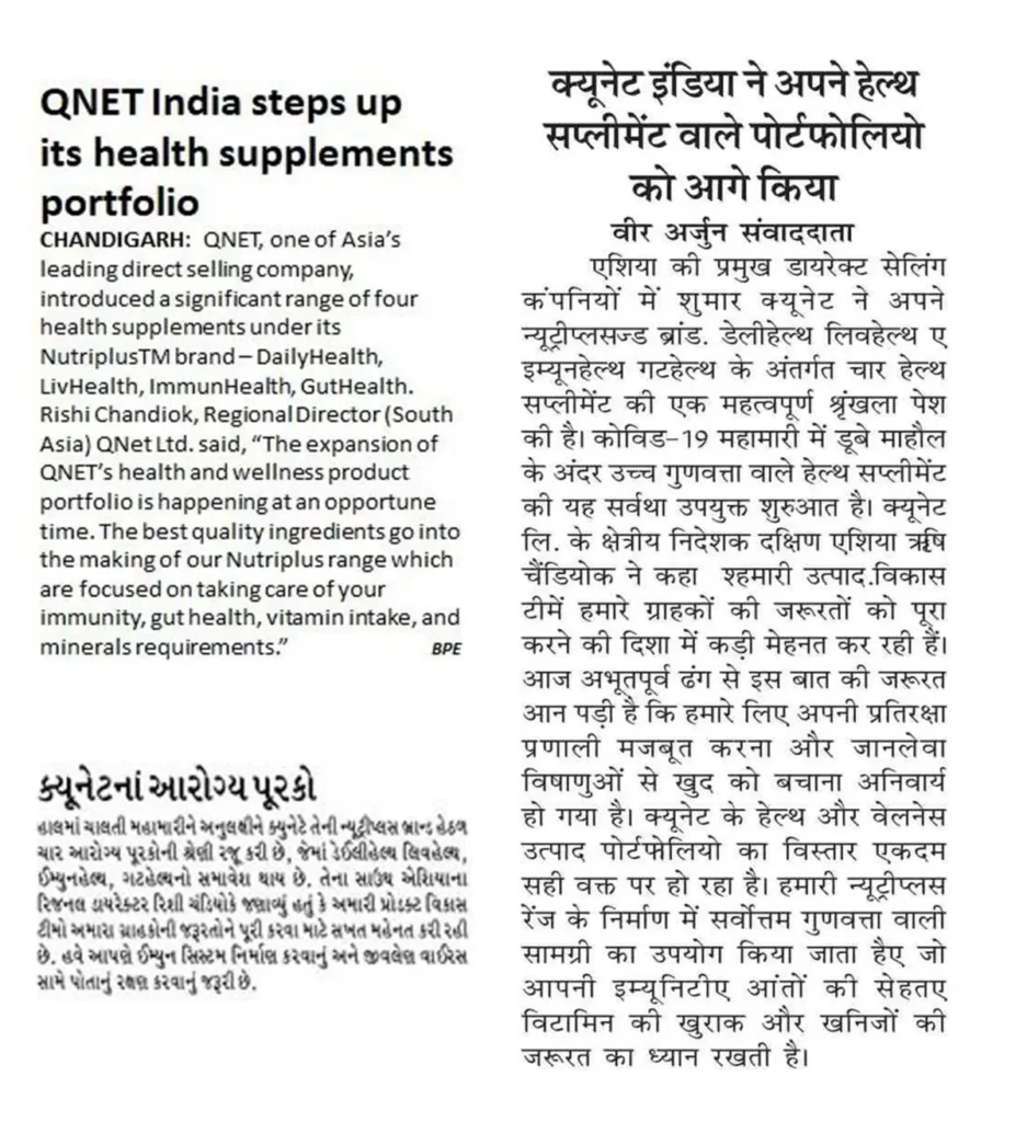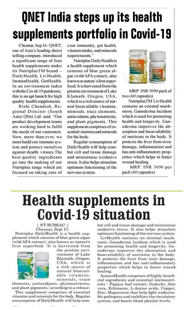 QNET India has stepped up its health supplements portfolio during the COVID-19 pandemic, with the launch of Nutriplus DailyHealth, LivHealth, ImmunHealth and GutHealth. This is in line with QNET’s product philosophy to focus on ‘Absolute Living’.