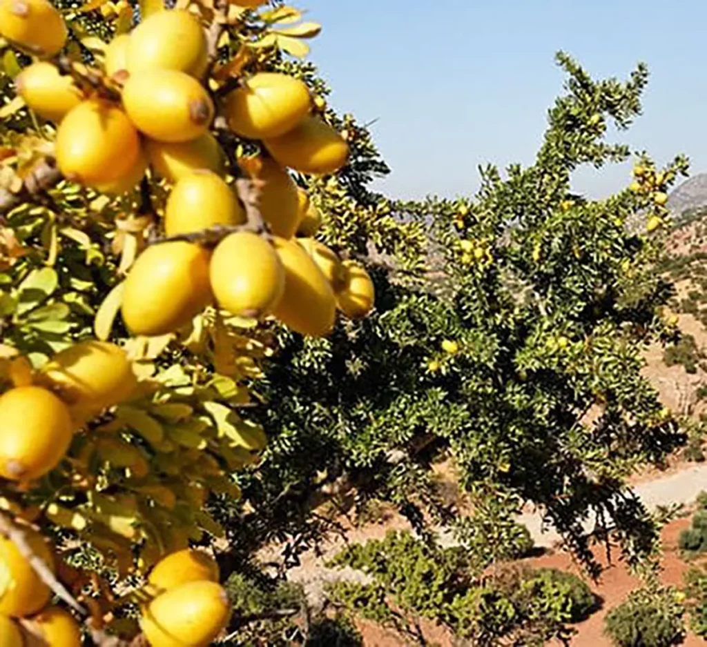 The Argan tree provides shelter, food and protection from the desert. It takes 35 years to mature and start producing the nuts from which the oil is extracted. The Argan tree also helps landscape stability, helping to prevent soil erosion and providing shade for pasture grasses. In addition, its leaves and fruits serve as feed for animals.